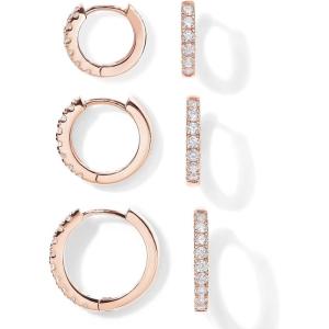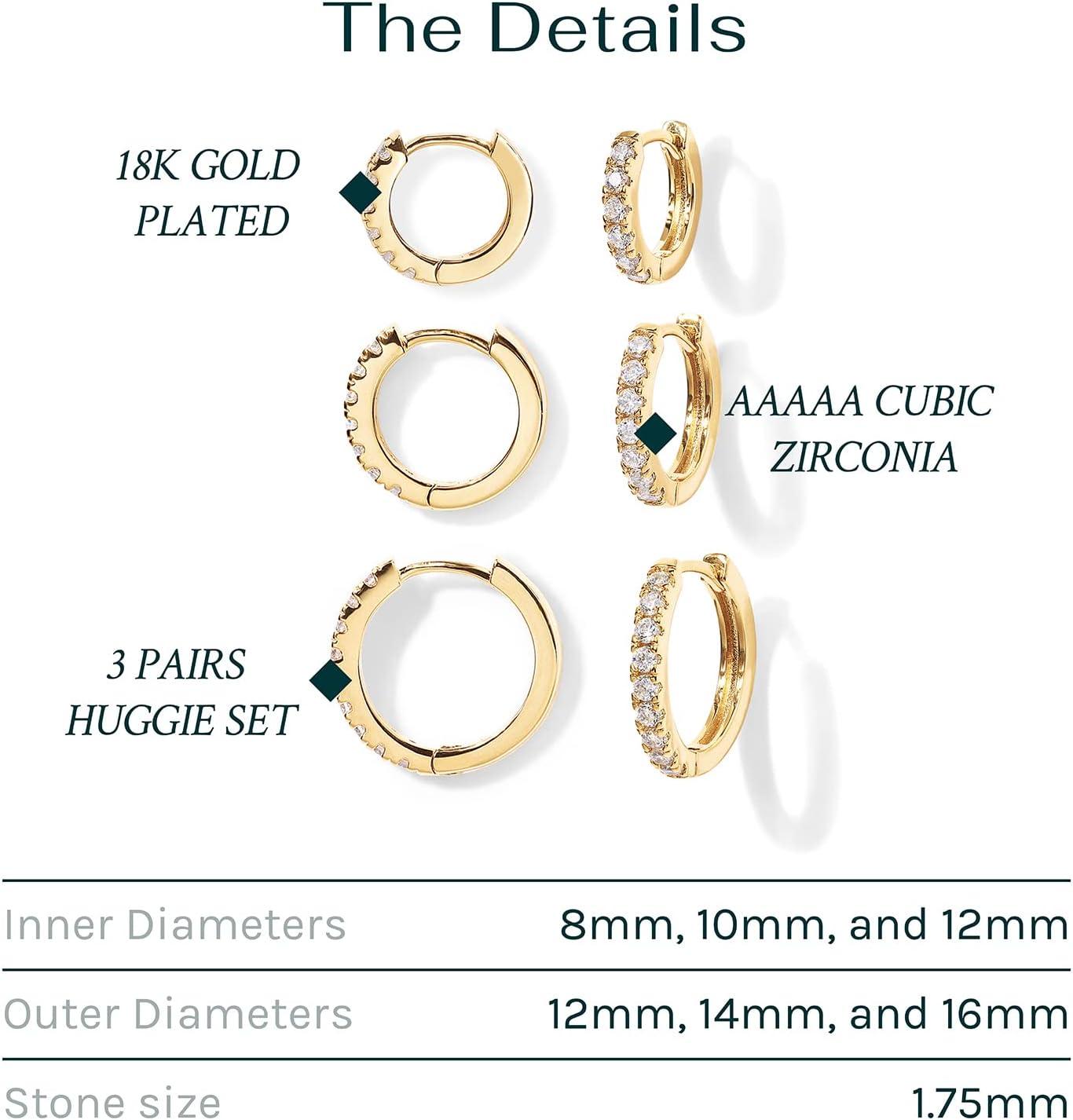 PAVOI 18K Gold Plated 925 Sterling Silver Posts 3 Pairs Hoop Earrings Set for Women | Huggie Earring Pack(Cubic Zirconia)