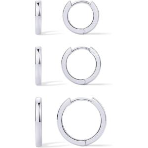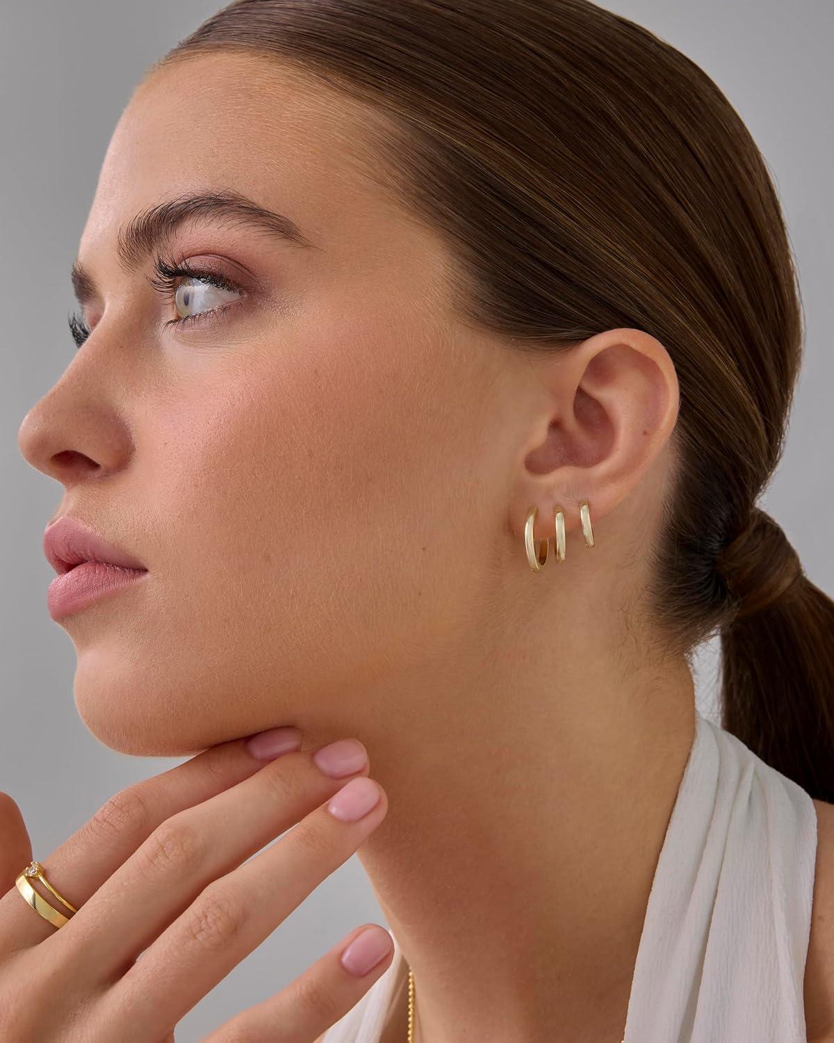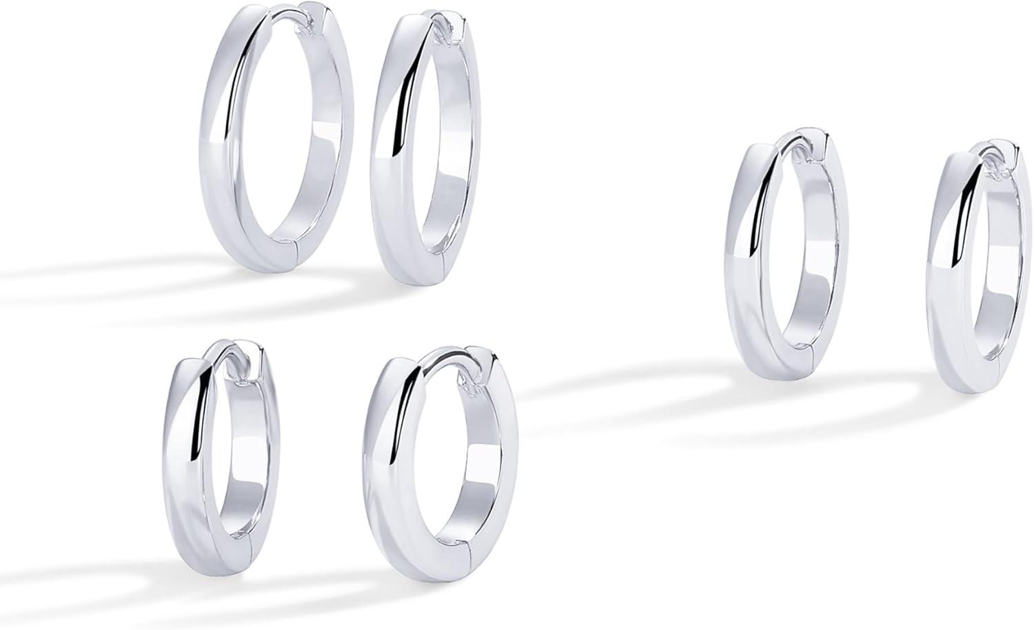 PAVOI 18K Gold Plated 925 Sterling Silver Posts 3 Pairs Hoop Earrings Set for Women | Huggie Earring Pack(Plain)