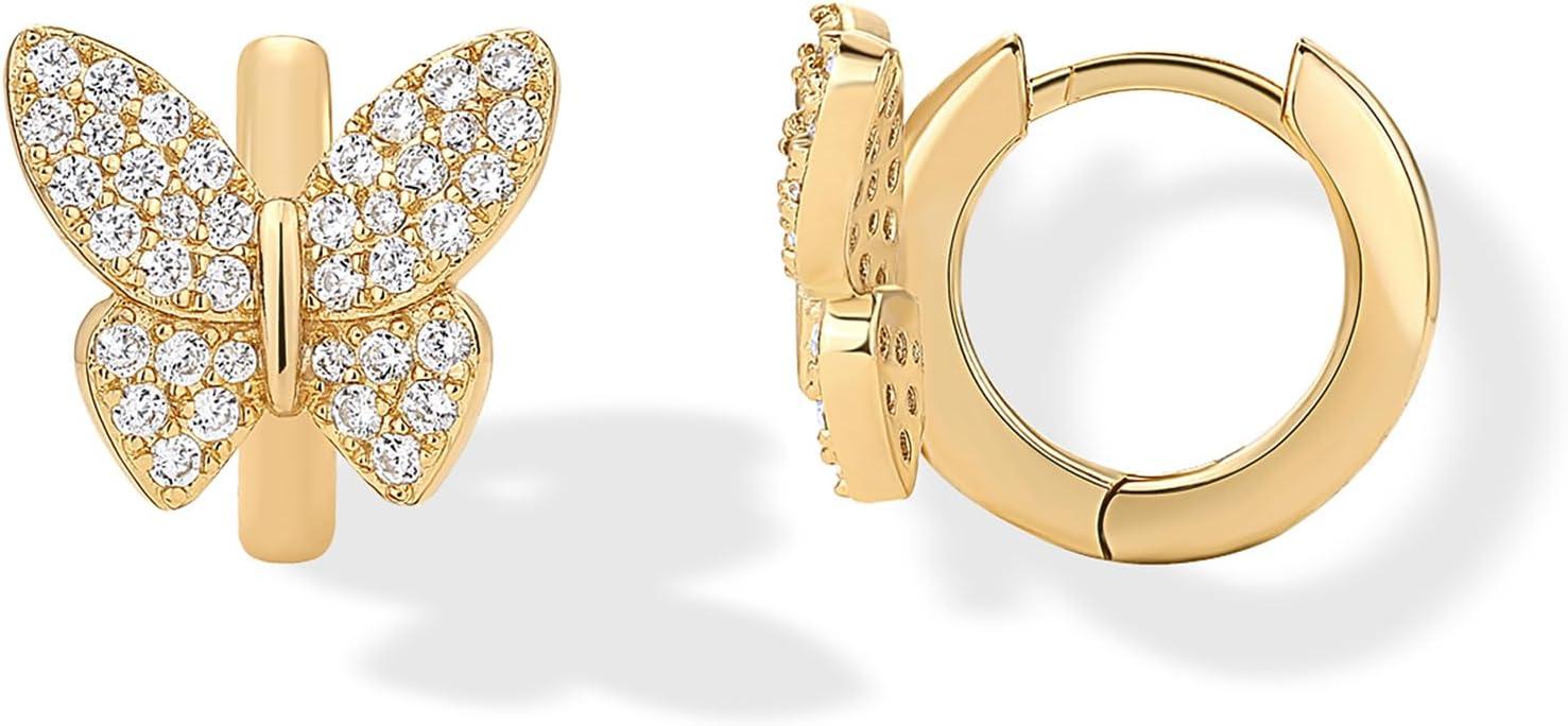 PAVOI 14K Gold Plated 925 Sterling Silver Posts Small Huggie Hoop Earrings for Women – Trendy Celestial North Star, Butterfly, Heart Hoop Earrings – Cubic Zirconia Cute Gold Motif Jewelry(Butterfly)