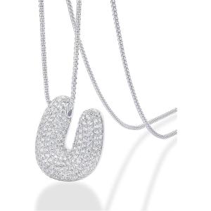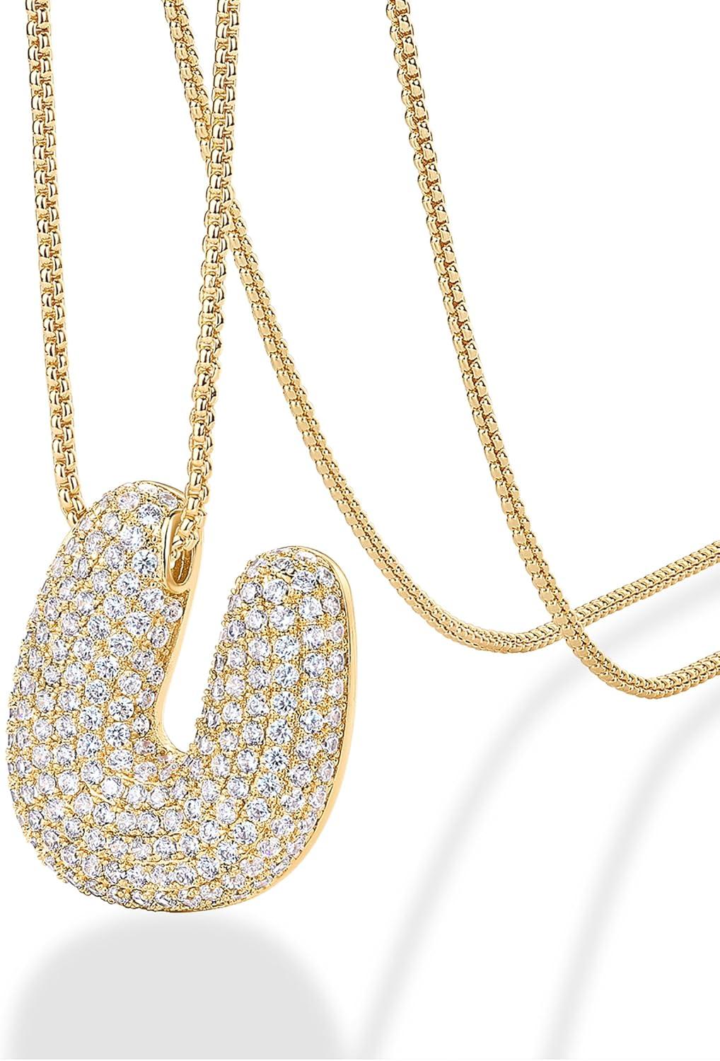 PAVOI 14K Gold Plated Cubic Zirconia Bubble Letter Initial Necklaces for Women | Gold Balloon Necklace Letter | Chunky Pendant Necklaces(-U)