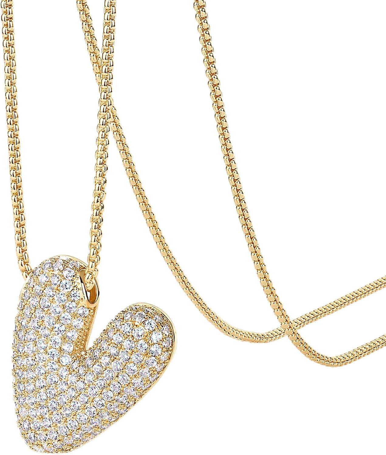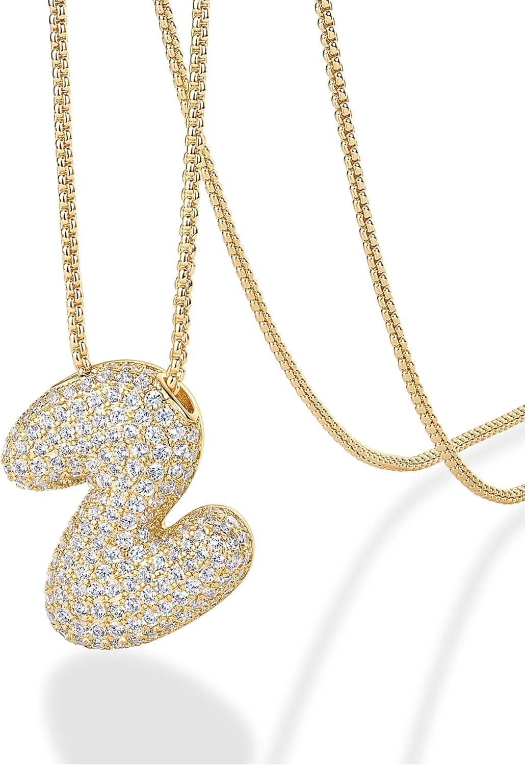 PAVOI 14K Gold Plated Cubic Zirconia Bubble Letter Initial Necklaces for Women | Gold Balloon Necklace Letter | Chunky Pendant Necklaces(-N)