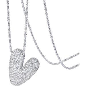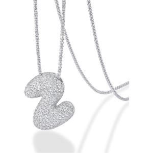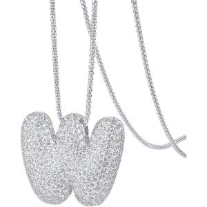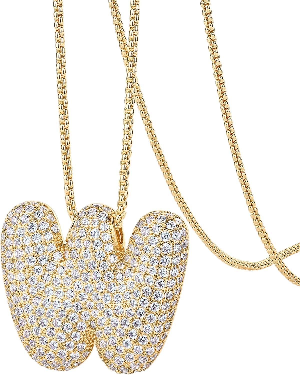 PAVOI 14K Gold Plated Cubic Zirconia Bubble Letter Initial Necklaces for Women | Gold Balloon Necklace Letter | Chunky Pendant Necklaces(-W)