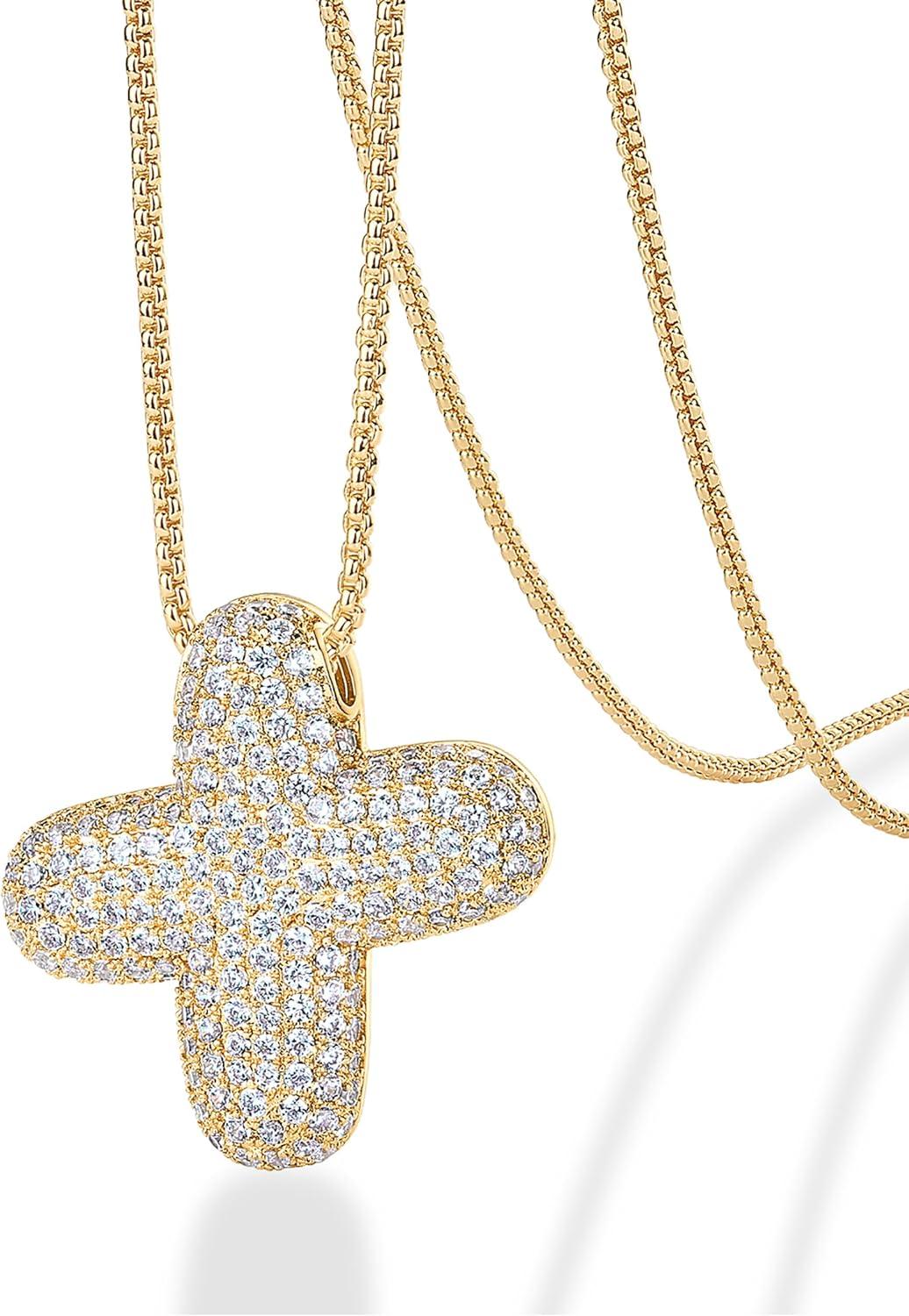 PAVOI 14K Gold Plated Cubic Zirconia Bubble Letter Initial Necklaces for Women | Gold Balloon Necklace Letter | Chunky Pendant Necklaces(-X)