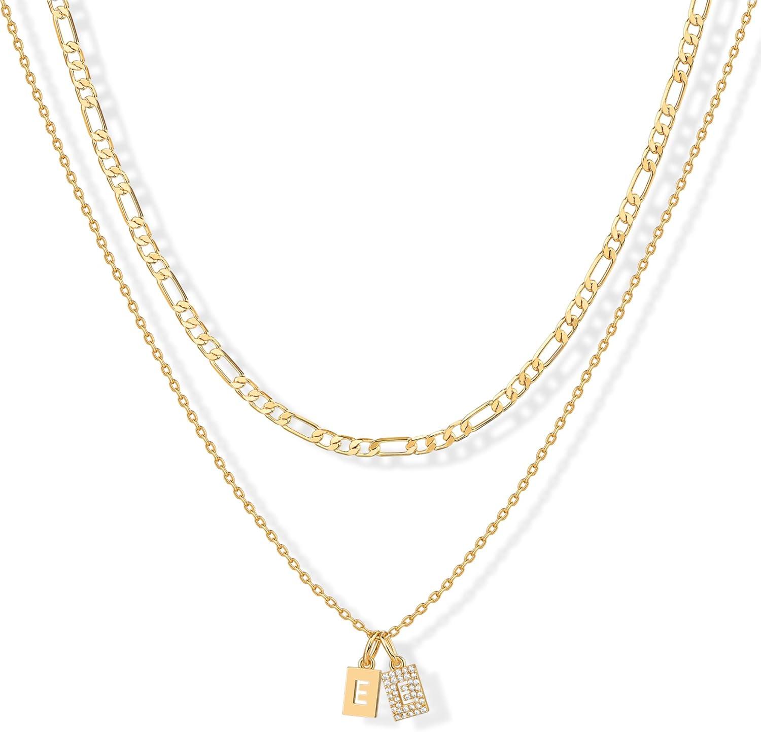 PAVOI 14K Gold Plated Initial Necklace | Letter Necklaces for Women(- E)