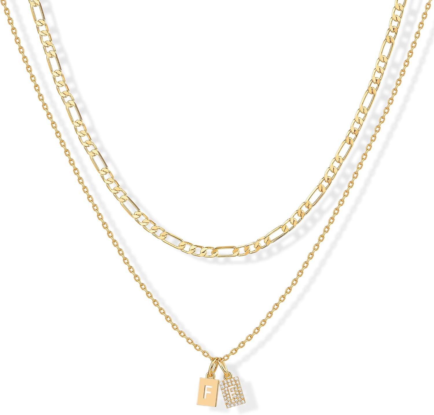 PAVOI 14K Gold Plated Initial Necklace | Letter Necklaces for Women(- F)