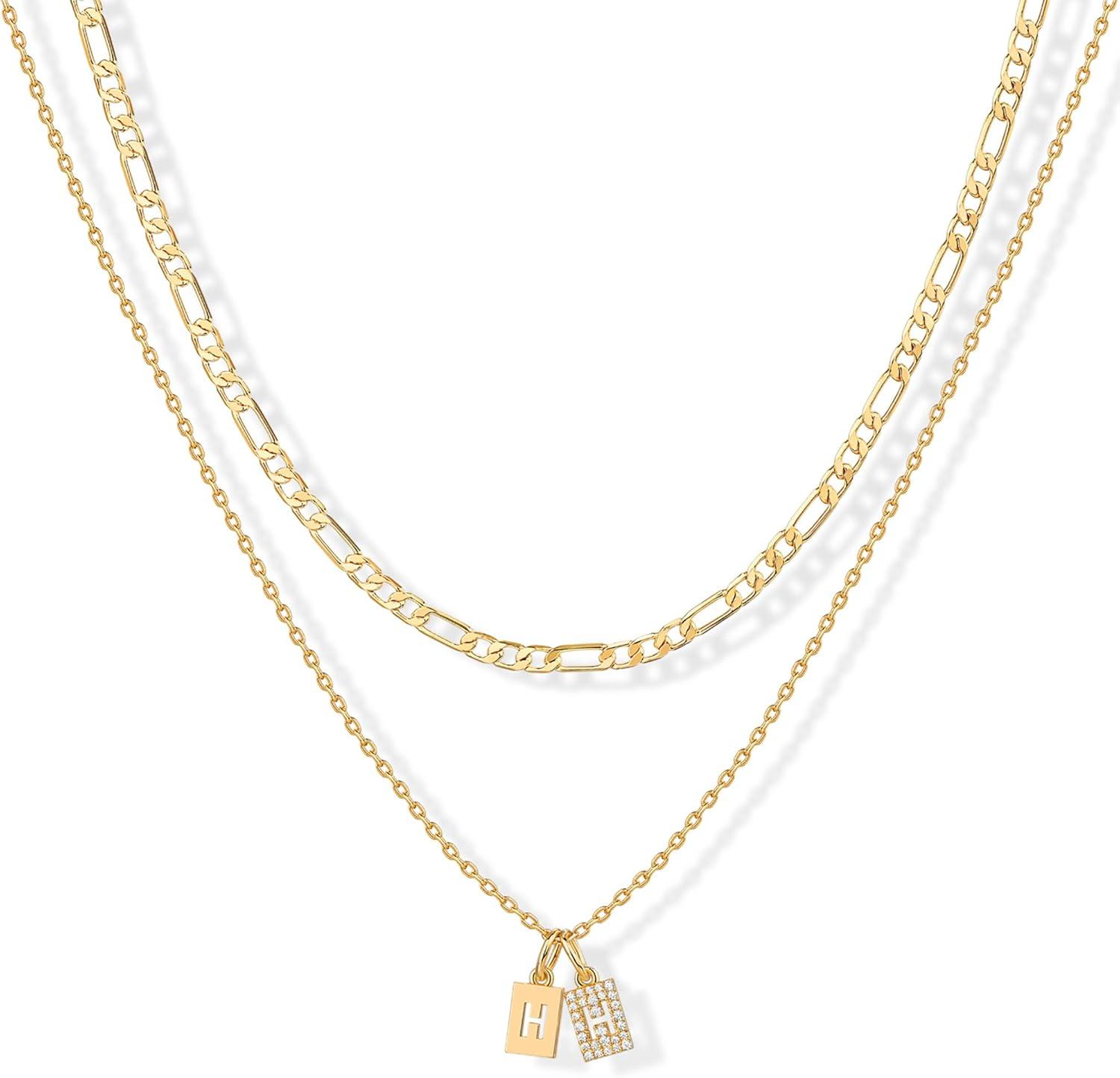 PAVOI 14K Gold Plated Initial Necklace | Letter Necklaces for Women(- H)