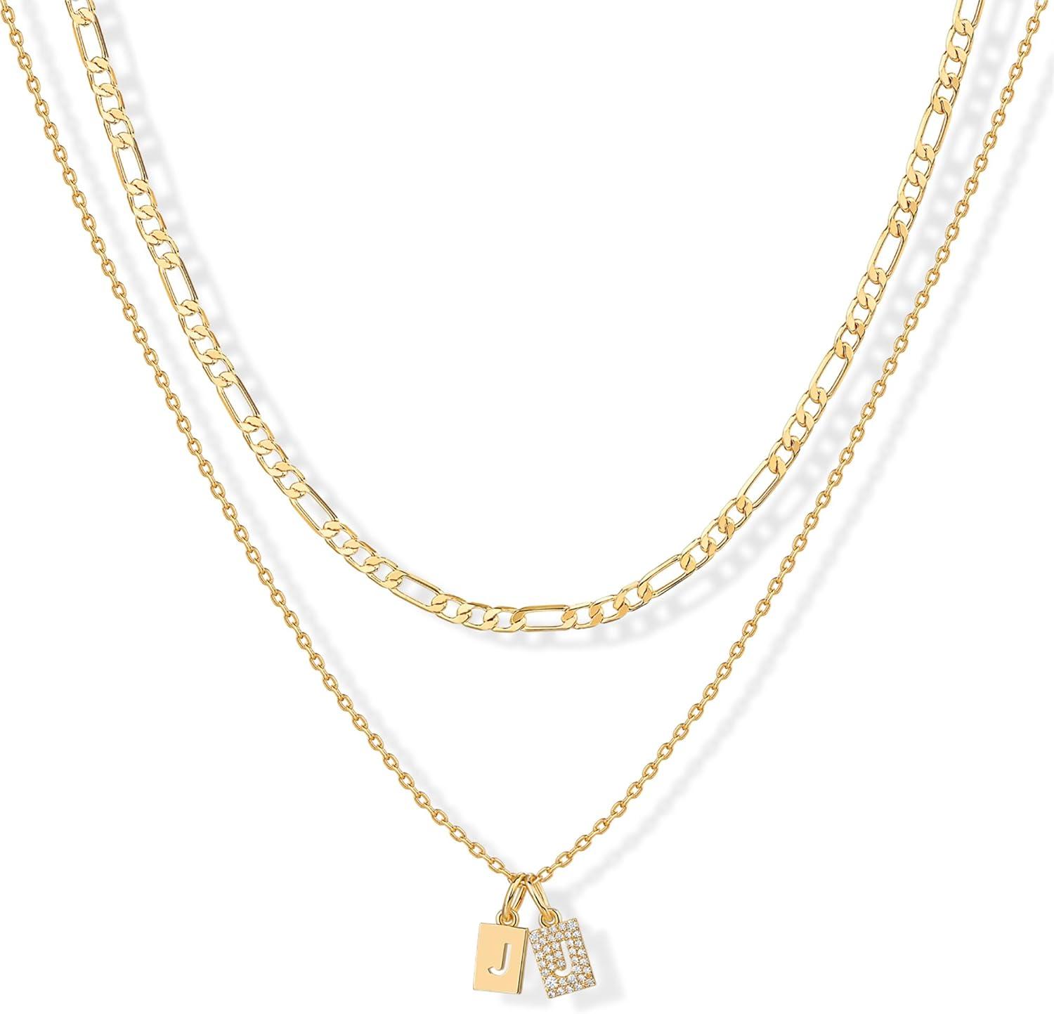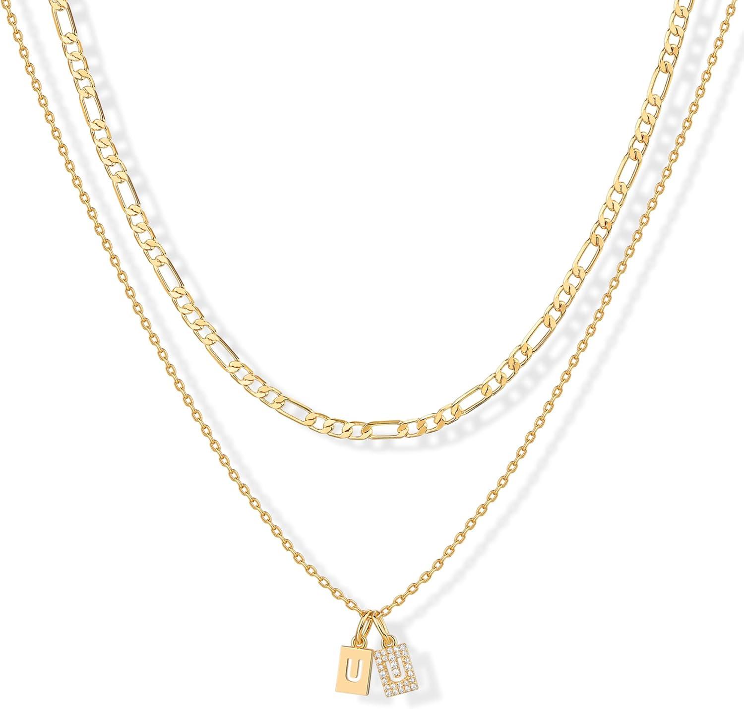 PAVOI 14K Gold Plated Initial Necklace | Letter Necklaces for Women(- U)