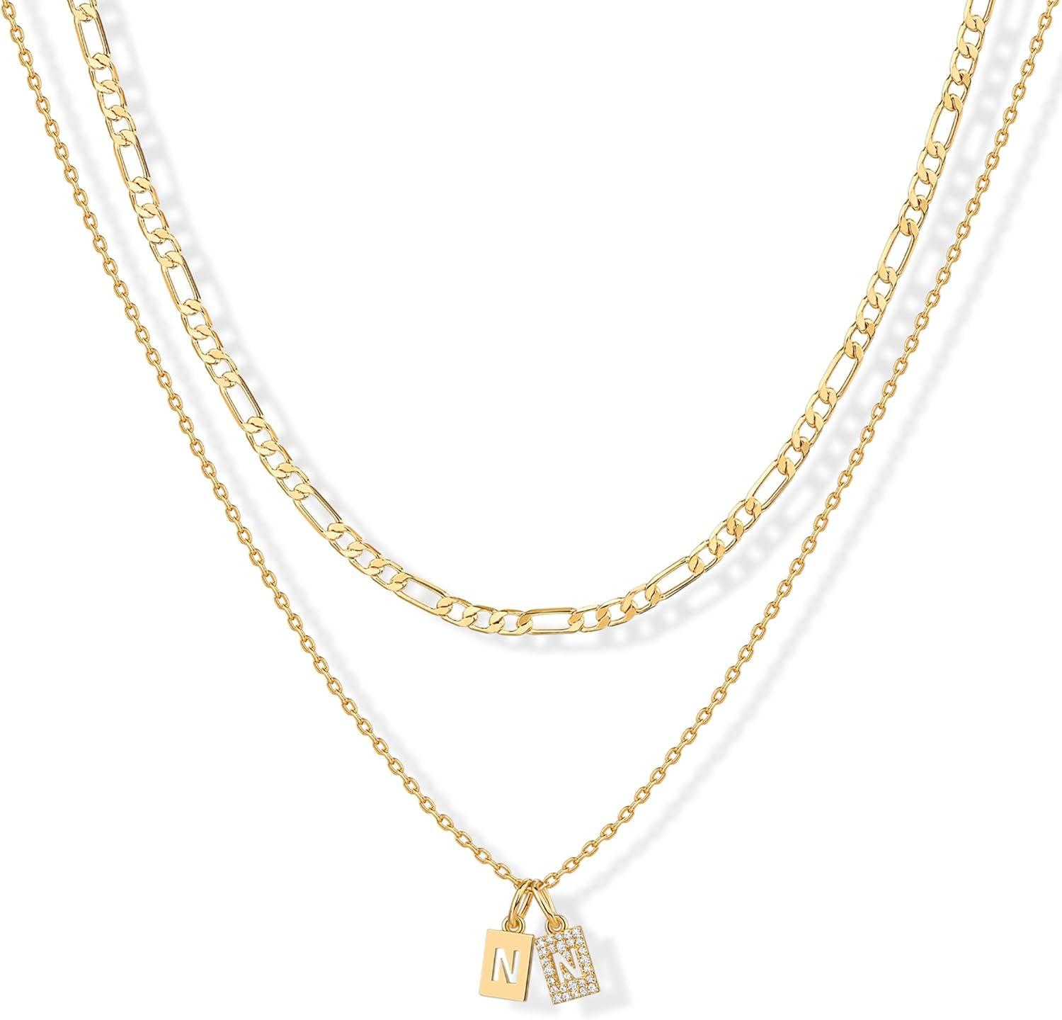 PAVOI 14K Gold Plated Initial Necklace | Letter Necklaces for Women(- N)
