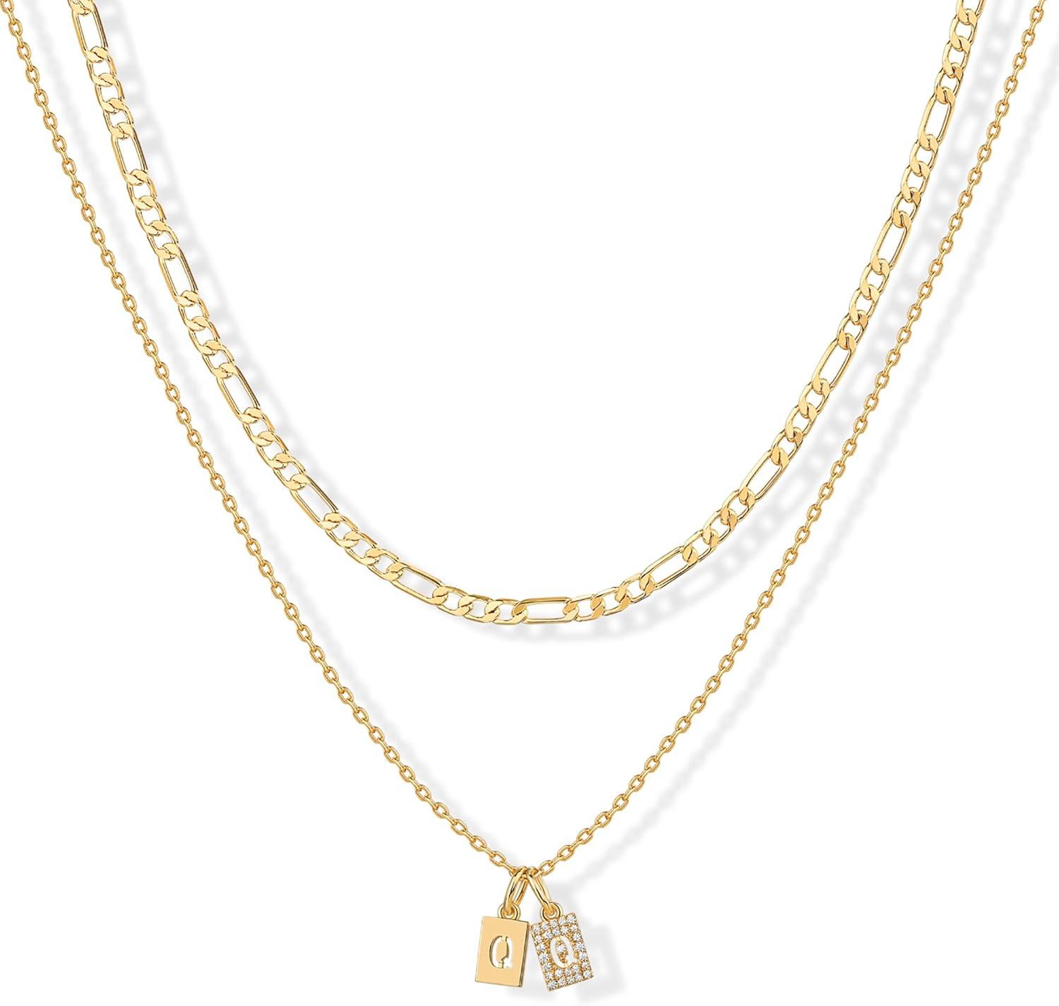 PAVOI 14K Gold Plated Initial Necklace | Letter Necklaces for Women(- Q)
