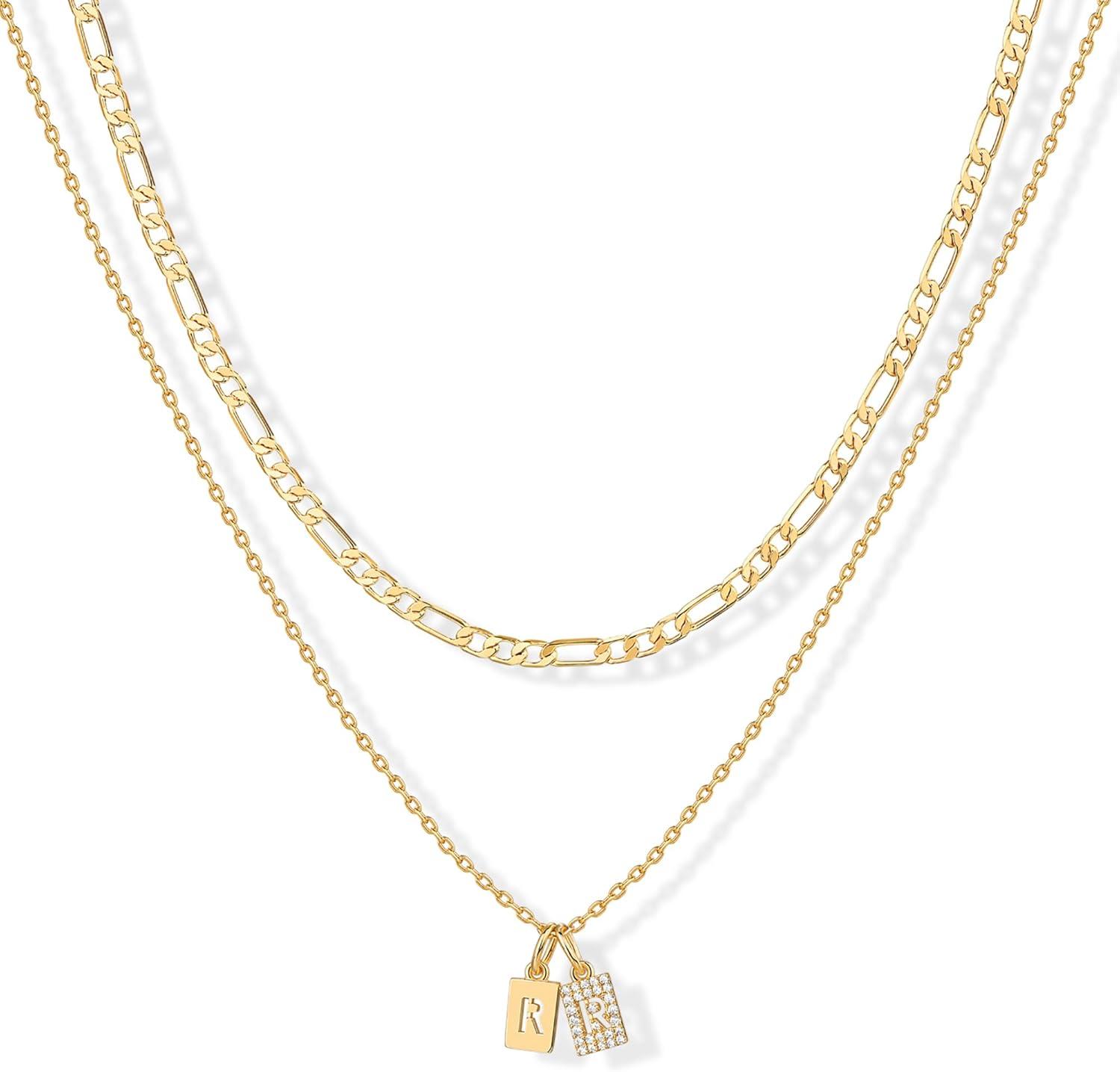 PAVOI 14K Gold Plated Initial Necklace | Letter Necklaces for Women(- R)