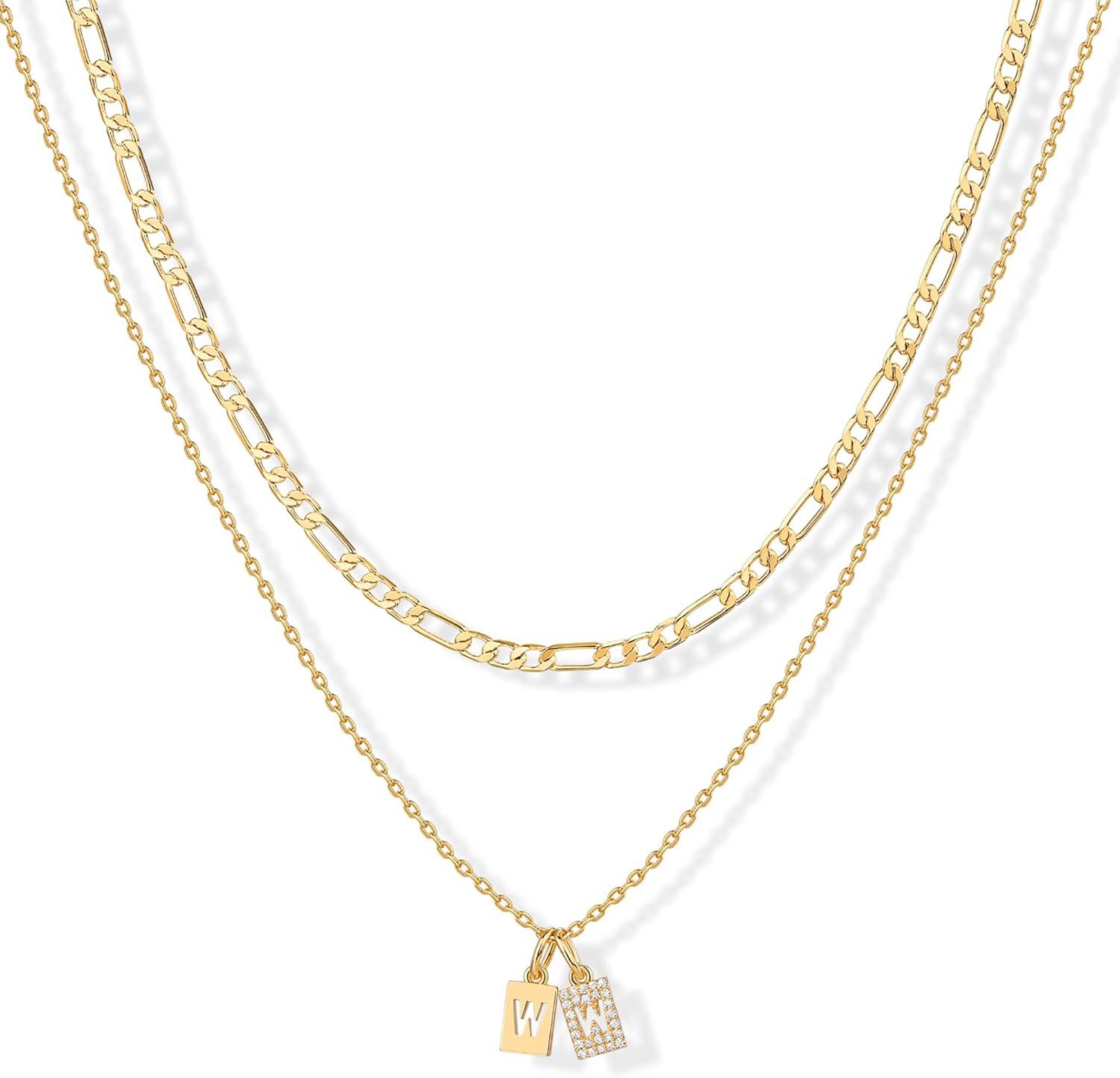 PAVOI 14K Gold Plated Initial Necklace | Letter Necklaces for Women(- W)