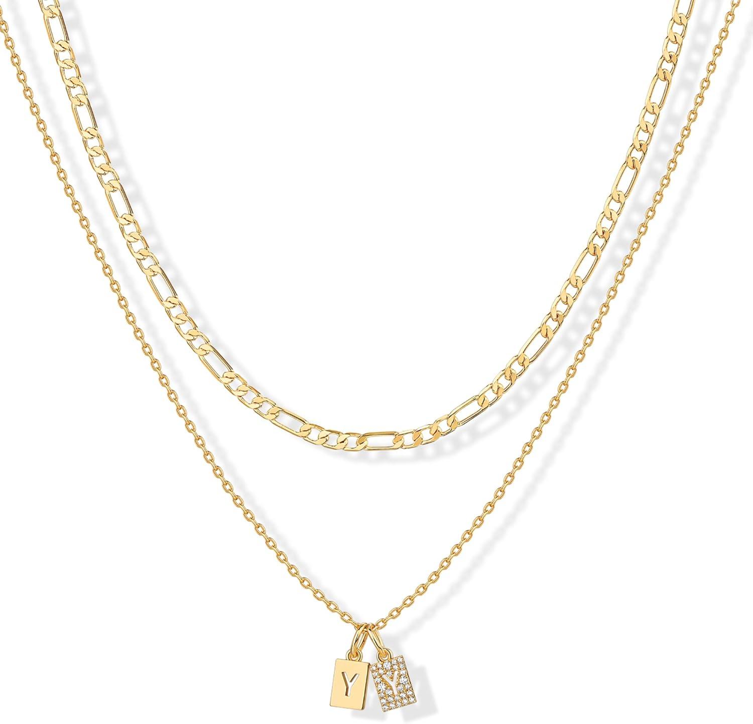 PAVOI 14K Gold Plated Initial Necklace | Letter Necklaces for Women(- Y)
