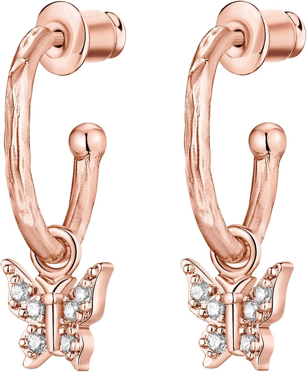 PAVOI 14K Gold Plated 925 Sterling Silver Post Huggie With Dangle | Butterfly, Evil Eye, Hamsa, Pearl Hoop Earring For Women | Trendy Dangle Hoop Earrings(Rose Gold)