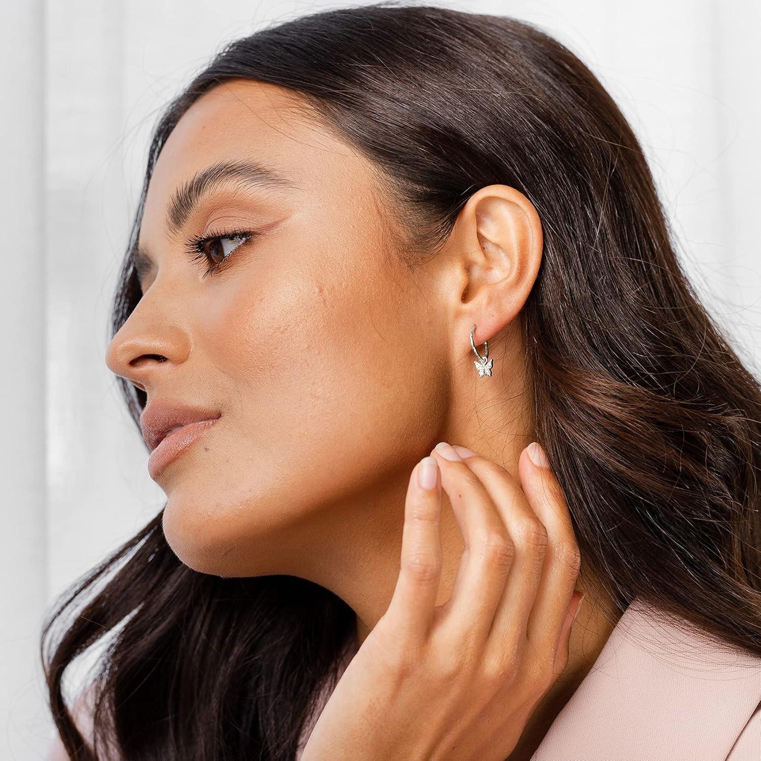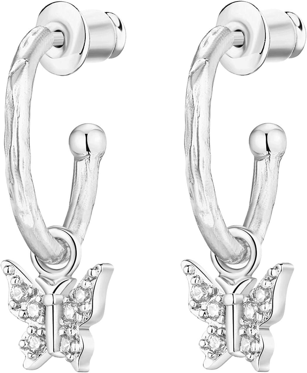 PAVOI 14K Gold Plated 925 Sterling Silver Post Huggie With Dangle | Butterfly, Evil Eye, Hamsa, Pearl Hoop Earring For Women | Trendy Dangle Hoop Earrings(White Gold)