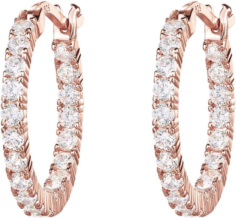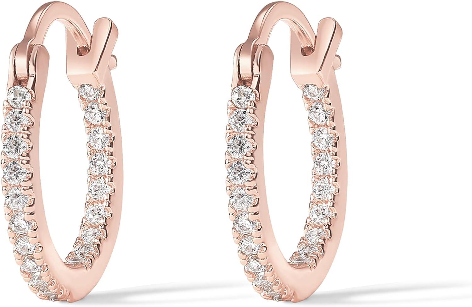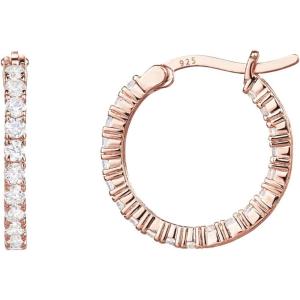 PAVOI 14K Gold Plated 925 Sterling Silver Post Cubic Zirconia Hoop Earrings for Women | Elegant Inside Out CZ Stone Hoop Earrings(Rose Gold)
