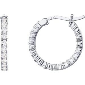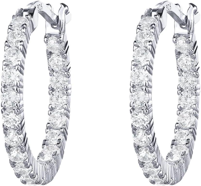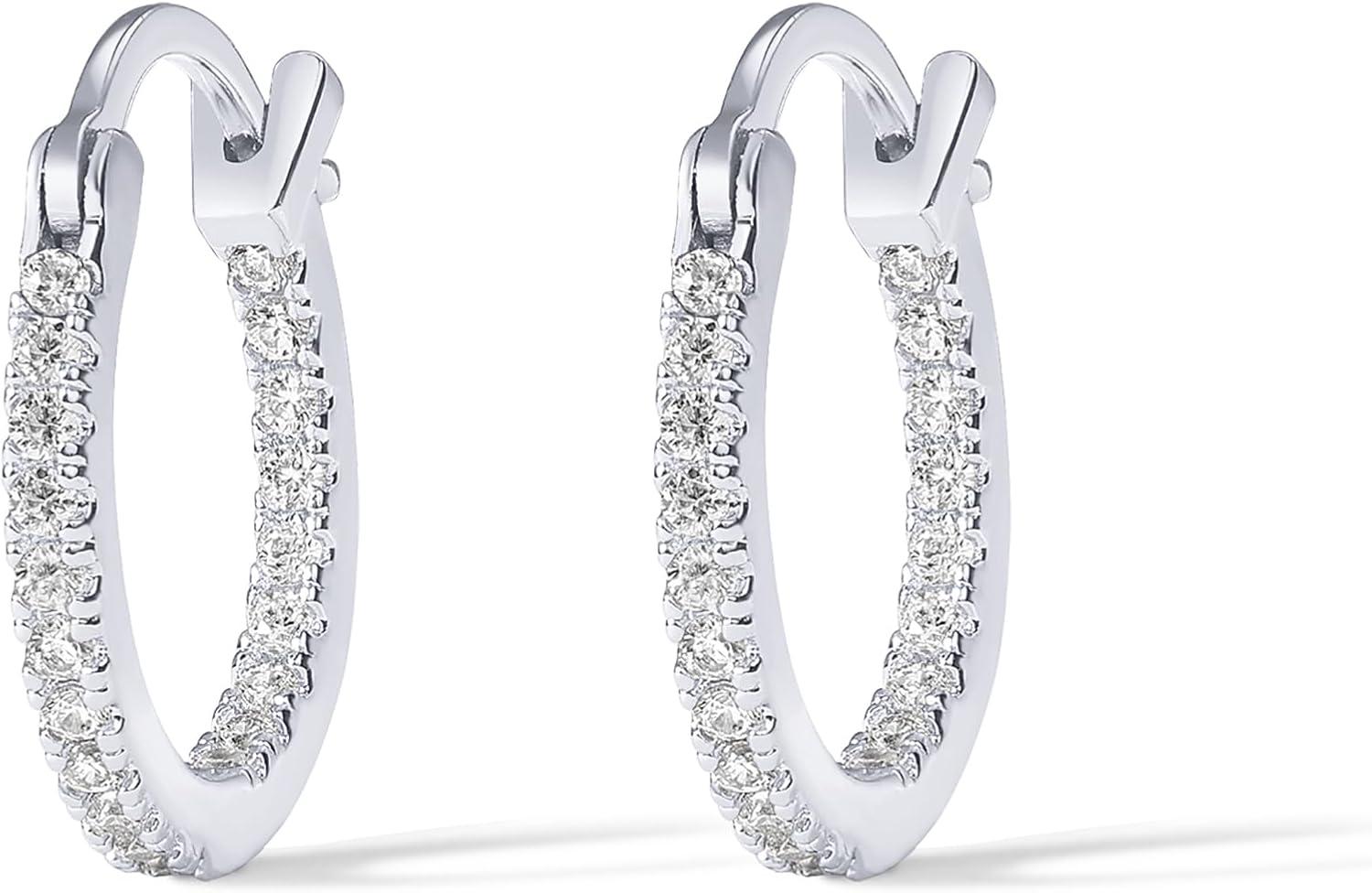 PAVOI 14K Gold Plated 925 Sterling Silver Post Cubic Zirconia Hoop Earrings for Women | Elegant Inside Out CZ Stone Hoop Earrings(White Gold)