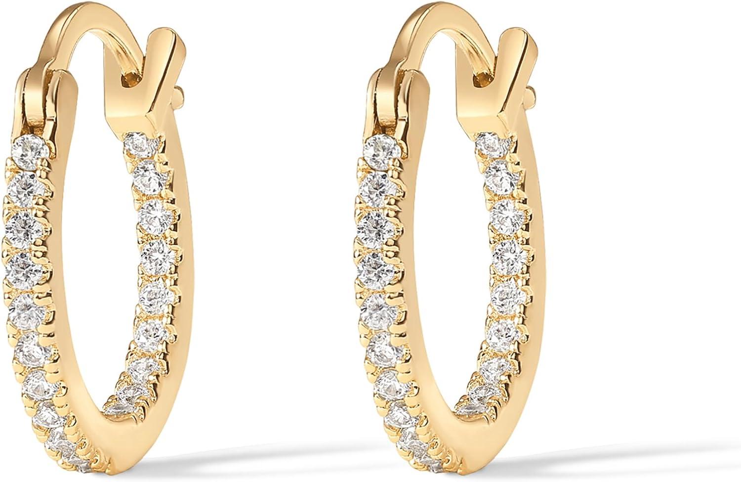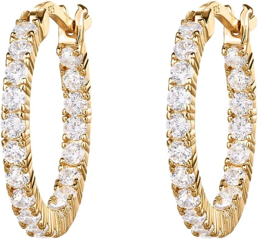 PAVOI 14K Gold Plated 925 Sterling Silver Post Cubic Zirconia Hoop Earrings for Women | Elegant Inside Out CZ Stone Hoop Earrings(Yellow Gold)