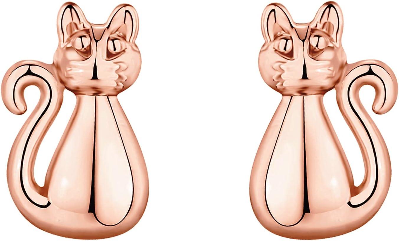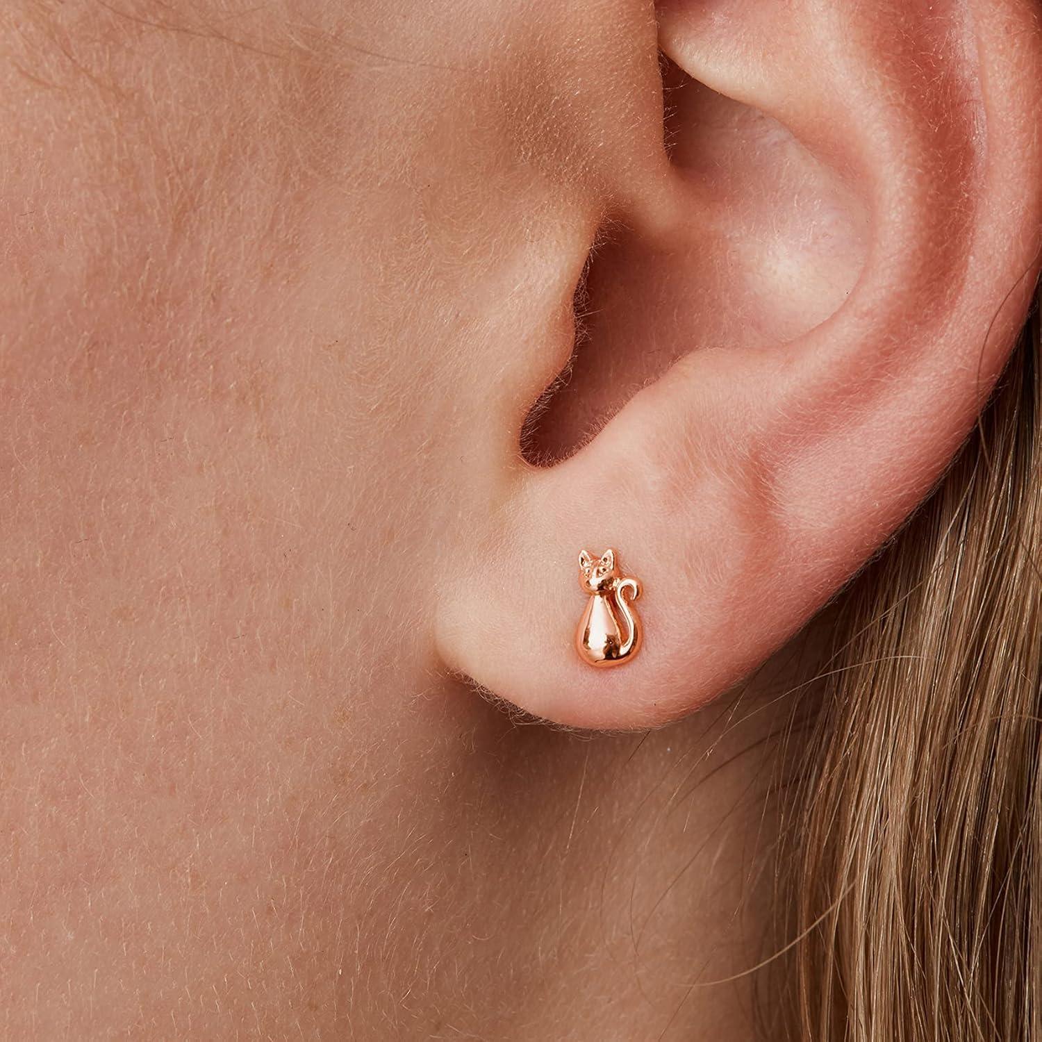 PAVOI 14K Gold Plated 925 Sterling Silver Bar, Dot, Heart, Triangle, Star, Cat | Dainty Earrings for Women(Rose Gold)