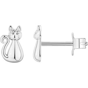 PAVOI 14K Gold Plated 925 Sterling Silver Bar, Dot, Heart, Triangle, Star, Cat | Dainty Earrings for Women(White Gold)
