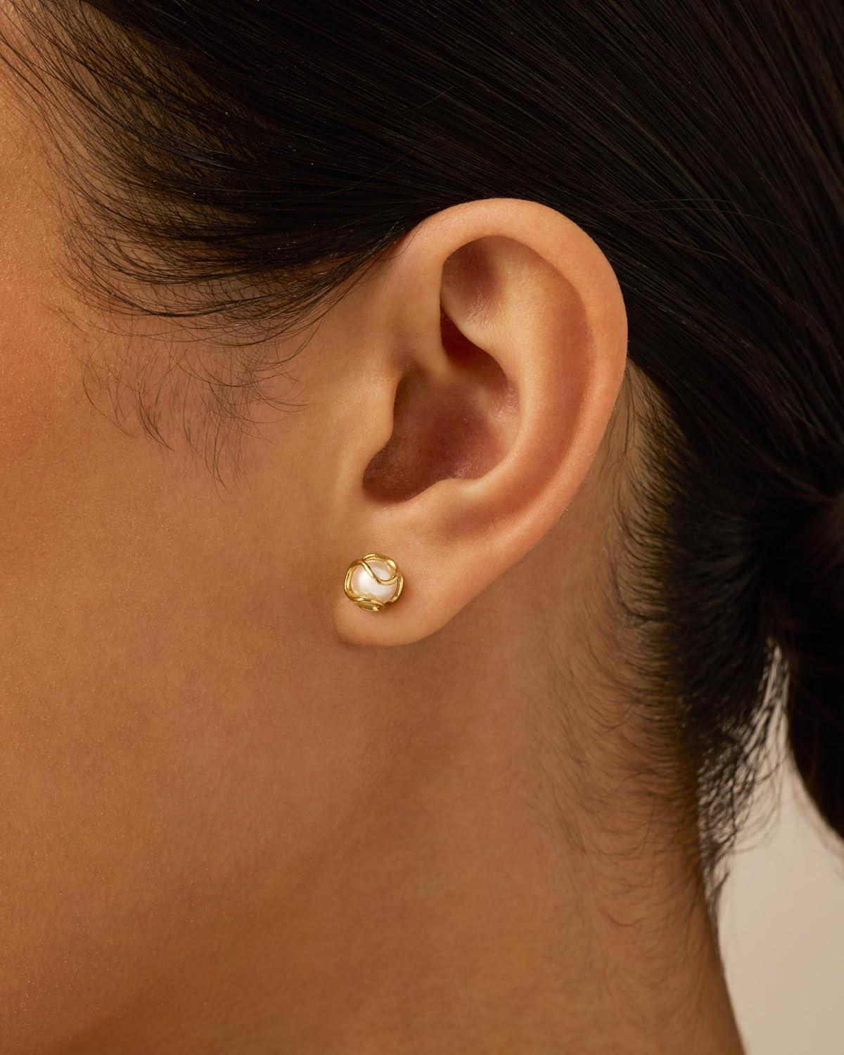 PAVOI 14K Gold Plated 925 Sterling Silver Posts Mini Stud Flat Back Earrings for Women | Helix Cartilage Piercing Jewelry | Dainty Pearl Star Cluster Cubic Zirconia Lotus Climber Screw Backs(Pearl Stud)