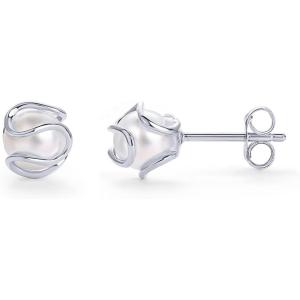 PAVOI 925 Sterling Silver, 14K Gold Plated, AAA+ Quality Handpicked Freshwater Cultured Stud Pearl Earrings(White Gold)