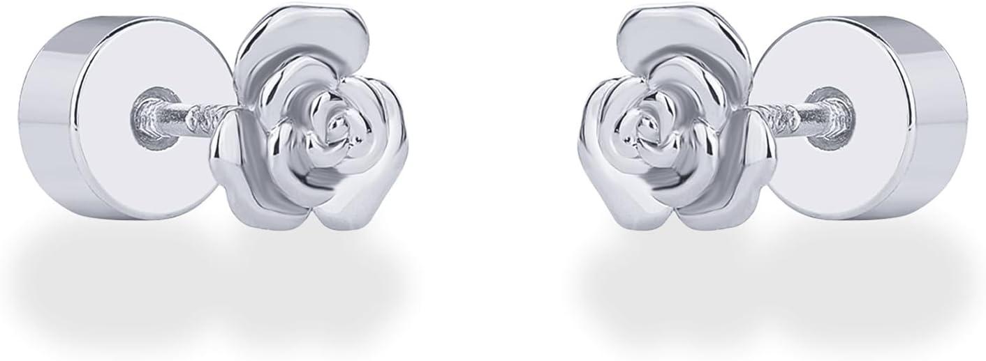 PAVOI 14K Gold Plated 925 Sterling Silver Posts Mini Stud Flat Back Earrings for Women | Helix Cartilage Piercing Jewelry | Dainty Pearl Star Cluster Cubic Zirconia Lotus Climber Screw Backs(Lotus Stud)