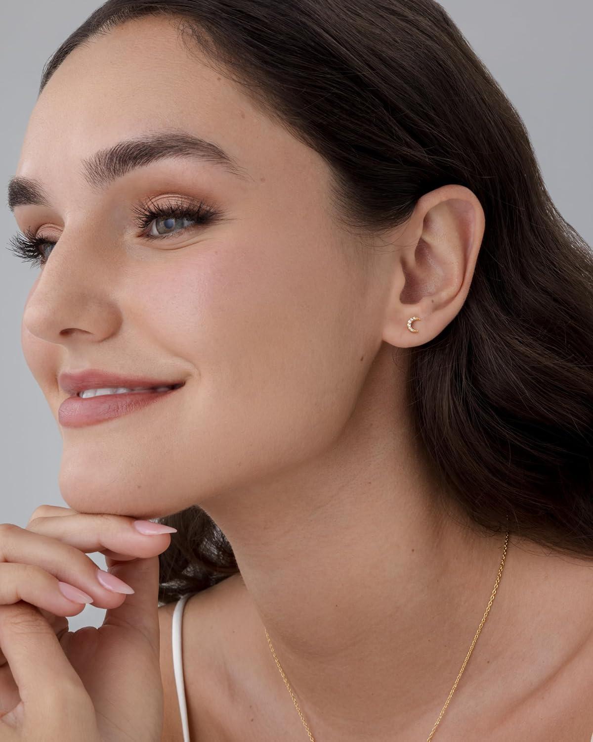 PAVOI 14K Gold Plated 925 Sterling Silver Posts Dainty Mini Multi-Shape Flat Back Stud Earring Pack for Women | Helix Cartilage Piercing Jewelry(Pavé)