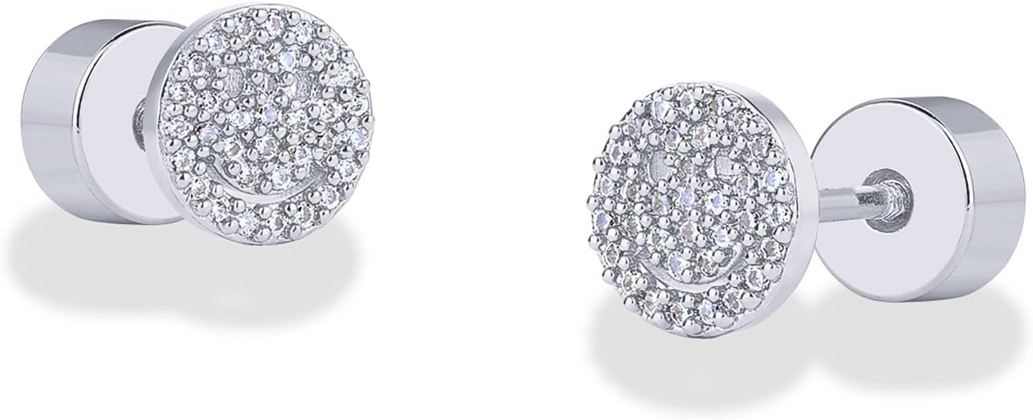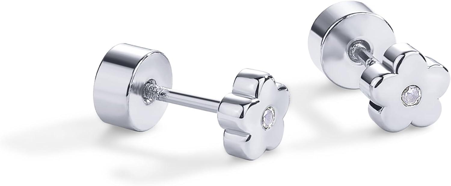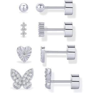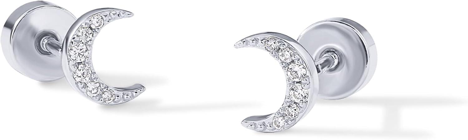 PAVOI 14K Gold Plated Sterling Silver Posts Colored Birthstone Flatback Stud Earrings for Women – Gemstone Cubic Zirconia Screwback Earrings – Dainty Helix Cartilage Piercing Jewelry(April – Diamond)