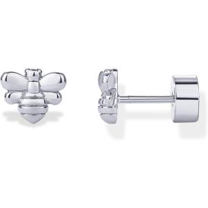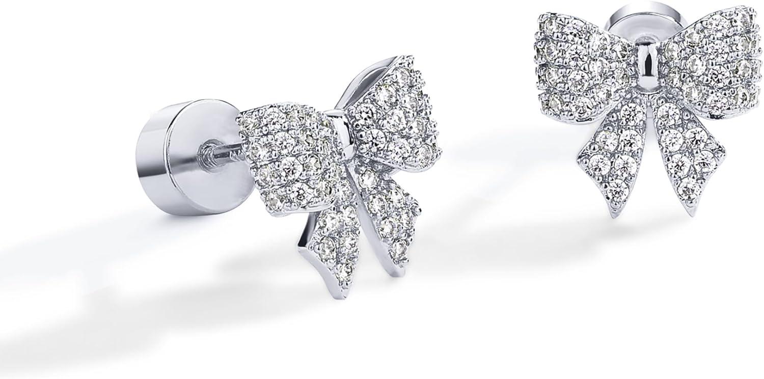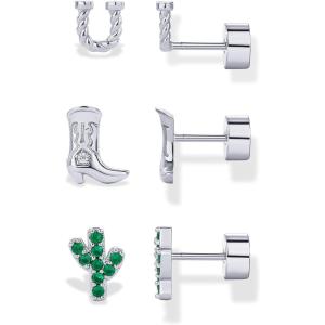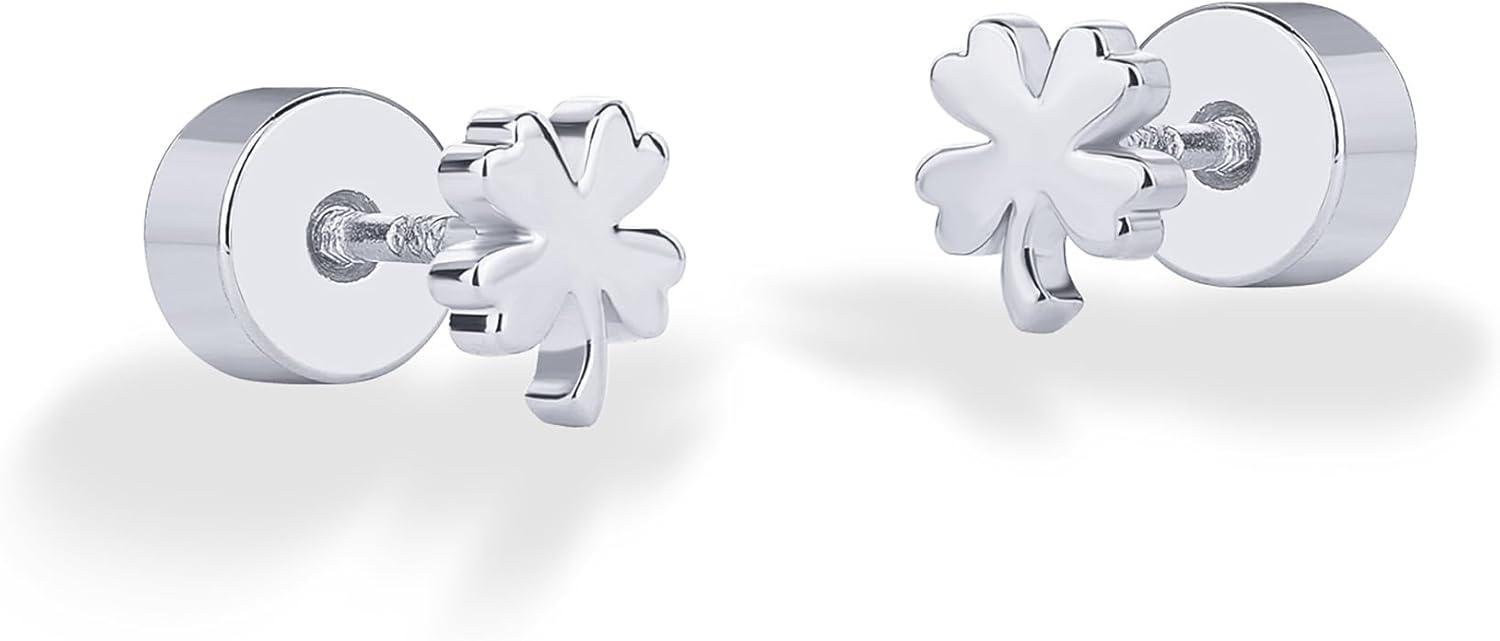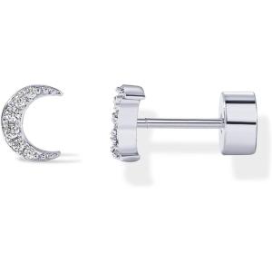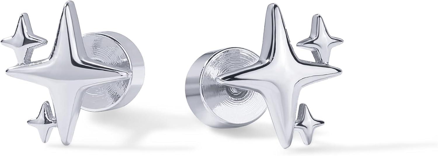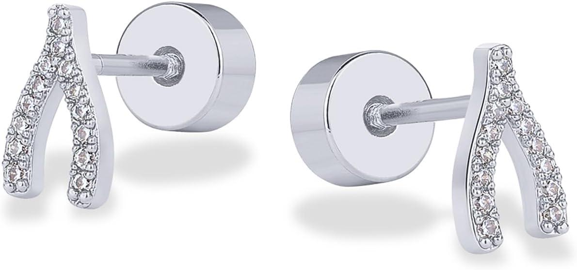 PAVOI 14K Gold Plated Sterling Silver Bar, Dot, Heart, Triangle, Star, Cat | Dainty Earrings for Women(White Gold)