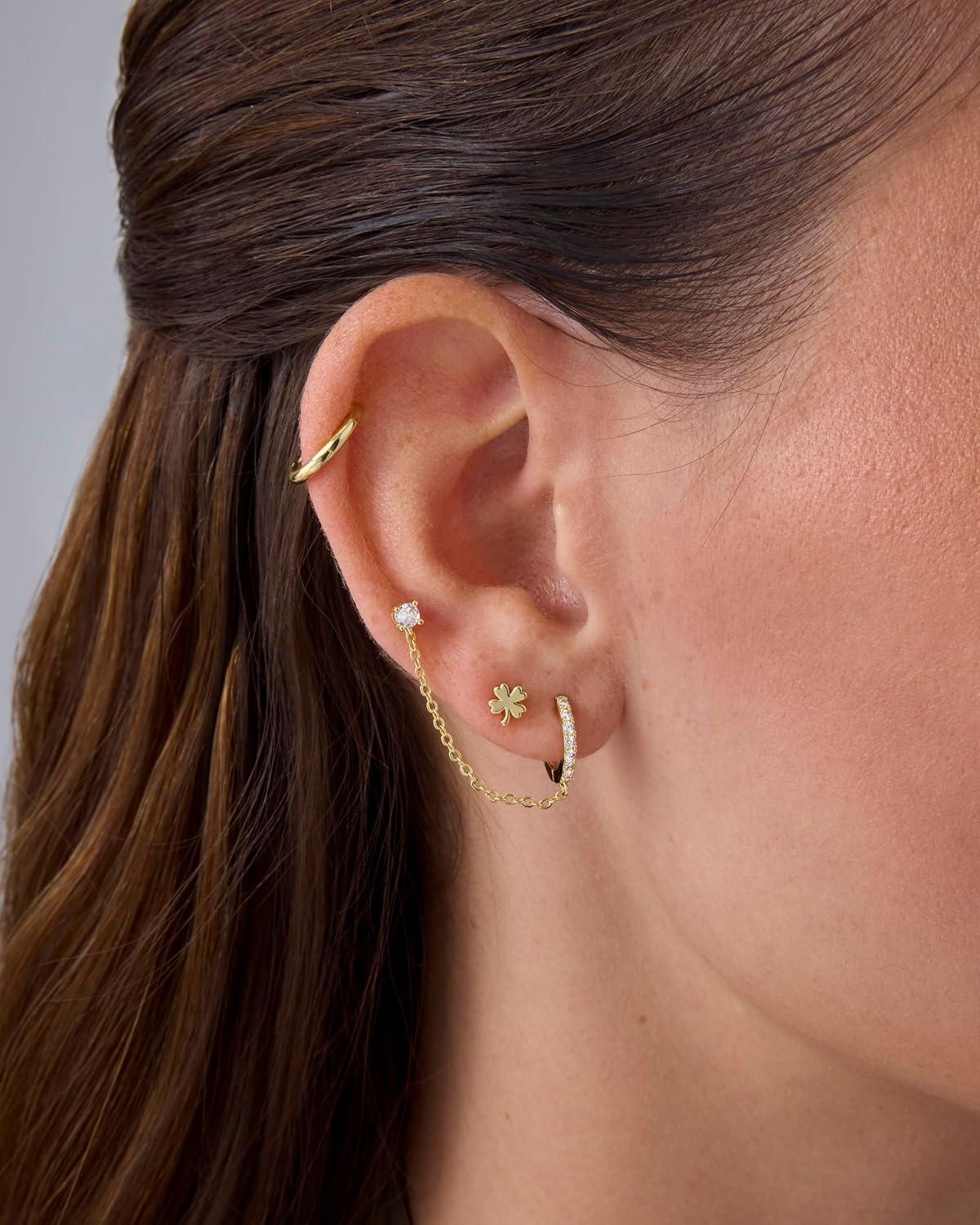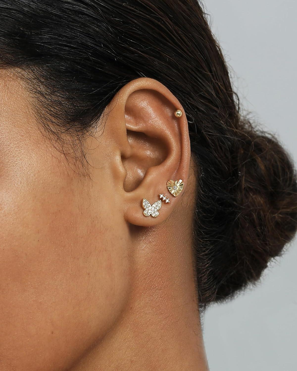 PAVOI 14K Gold Plated 925 Sterling Silver Posts Mini Stud Flat Back Earrings for Women | Helix Cartilage Piercing Jewelry | Dainty Pearl Star Cluster Cubic Zirconia Lotus Climber Screw Backs(Climber Stud)