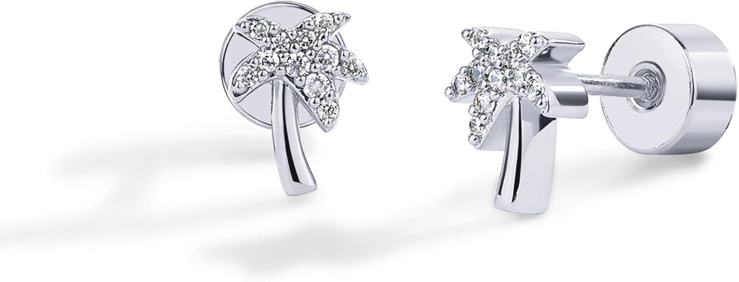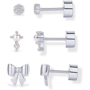 PAVOI 14K Gold Plated 925 Sterling Silver Bar, Dot, Heart, Triangle, Star, Cat | Dainty Earrings for Women(White Gold)