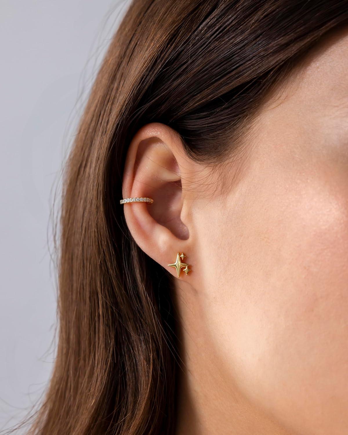 PAVOI 14K Gold Plated 925 Sterling Silver Posts Mini Stud Flat Back Earrings for Women | Helix Cartilage Piercing Jewelry | Dainty Pearl Star Cluster Cubic Zirconia Lotus Climber Screw Backs(Star Cluster)