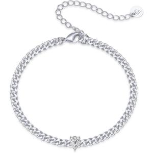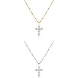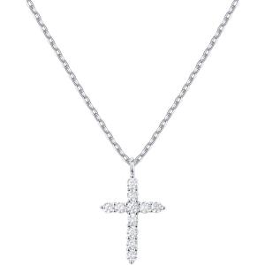 PAVOI 14K Gold Plated Station Necklace – Simulated Diamond Layering Necklaces – Womens CZ Chain(White Gold)
