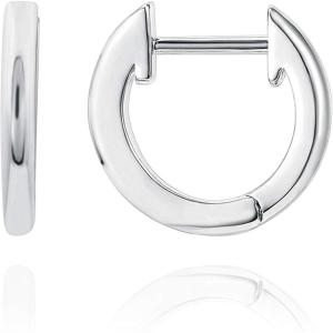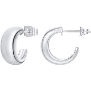 PAVOI 14K Gold Plated Thick Dome Huggie Earrings for Women – 925 Sterling Silver Posts Small Wide Round Hoop Earrings(White Gold)