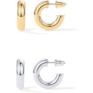 PAVOI 14K Gold Plated Lightweight Chunky Open Hoops for Women | Trendy Gold Hoop Earrings(Pack)