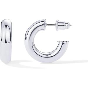 PAVOI 14K Gold Plated Lightweight Chunky Open Hoops for Women | Trendy Gold Hoop Earrings(White Gold)