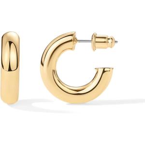 PAVOI 14K Gold Plated Lightweight Chunky Open Hoops for Women | Trendy Gold Hoop Earrings(Yellow Gold)