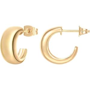 PAVOI 14K Gold Plated Thick Dome Huggie Earrings for Women – 925 Sterling Silver Posts Small Wide Round Hoop Earrings(Yellow Gold)