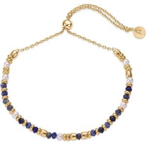 PAVOI 14K Yellow Gold Plated Gemstone Beaded Bracelets for Women – Adjustable Slider Dainty Pearl Bracelet – Boho Festival Pearls, Labradorite, Sodalite, Red Jade, Amazonite Beads – Gold Jewelry Gifts(Sodalite)