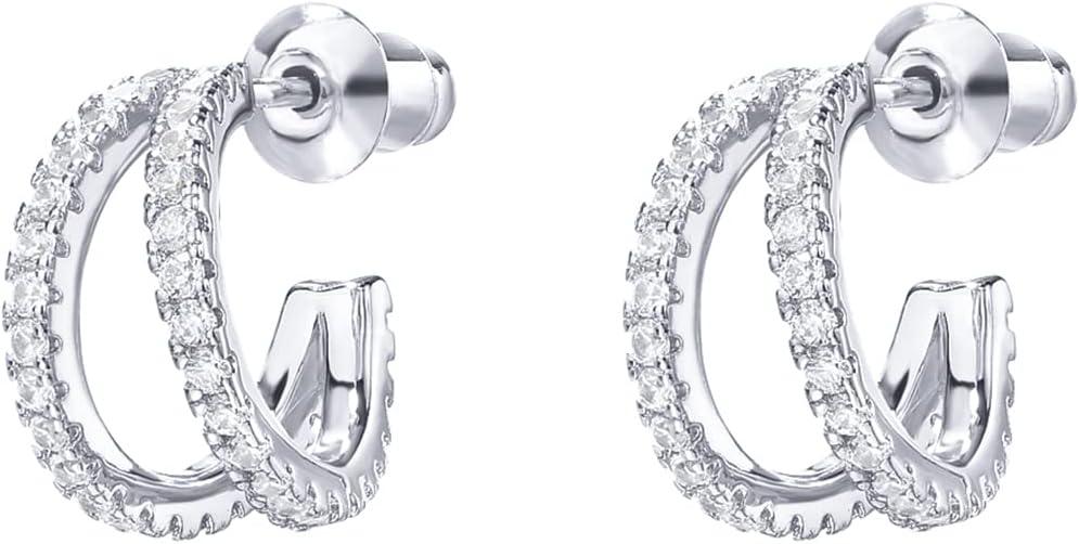 PAVOI 14K Gold Plated Split Huggie Hoop Earrings for Women – 925 Sterling Silver Posts Dainty Multi Hoop Huggie Earrings – Trendy Gold Jewelry(White Gold)