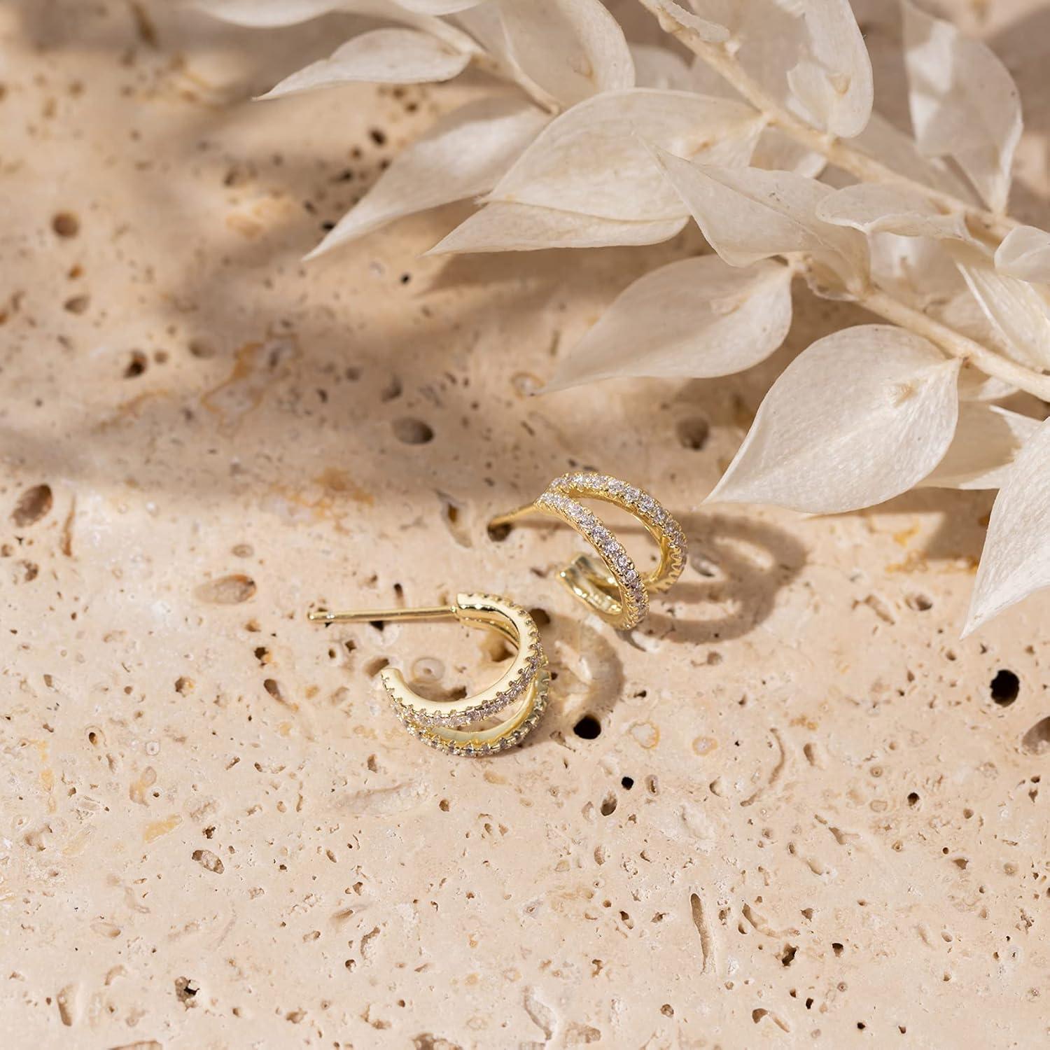 PAVOI 14K Gold Plated Split Huggie Hoop Earrings for Women – 925 Sterling Silver Posts Dainty Multi Hoop Huggie Earrings – Trendy Gold Jewelry(Vermeil – Yellow)