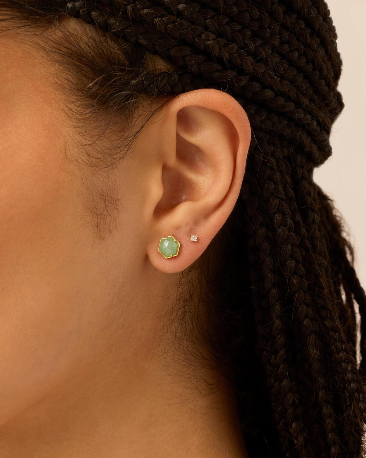 PAVOI 14K Gold Plated Hexagon Gemstone Stud Earrings for Women | Natural Birthstone Earring Pair(Green Fluorite)