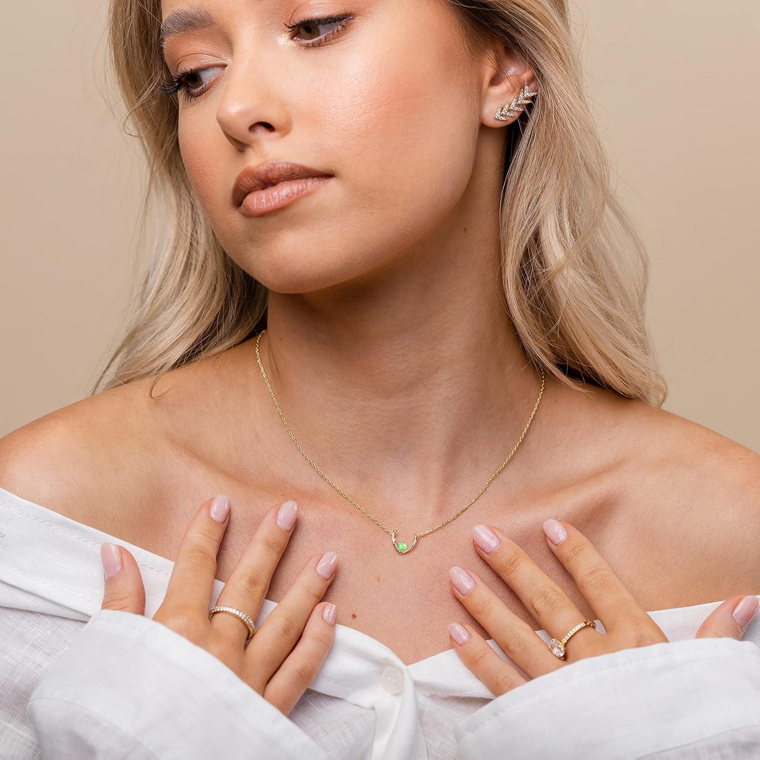 PAVOI 14K Gold Plated Created White Opal Necklace | Opal Necklaces for Women(Yellow Gold)