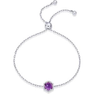 PAVOI 14K Gold Plated Hexagon Gemstone Bracelet for Women | Natural Birthstone 9″ Bracelet(White Gold)