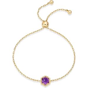 PAVOI 14K Gold Plated Hexagon Gemstone Bracelet for Women | Natural Birthstone 9″ Bracelet(Yellow Gold)