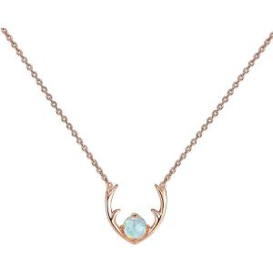 PAVOI 14K Gold Plated Opal Pendant Necklaces for Women | Created Opal Cubic Zirconia Dainty Necklace | Butterfly Round Triangle Antler Bar Pendants(Rose Gold)