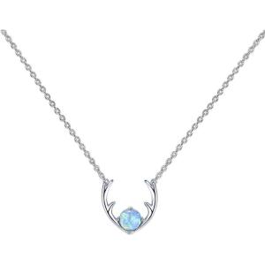 PAVOI 14K Gold Plated Opal Pendant Necklaces for Women | Created Opal Cubic Zirconia Dainty Necklace | Butterfly Round Triangle Antler Bar Pendants(White Gold)