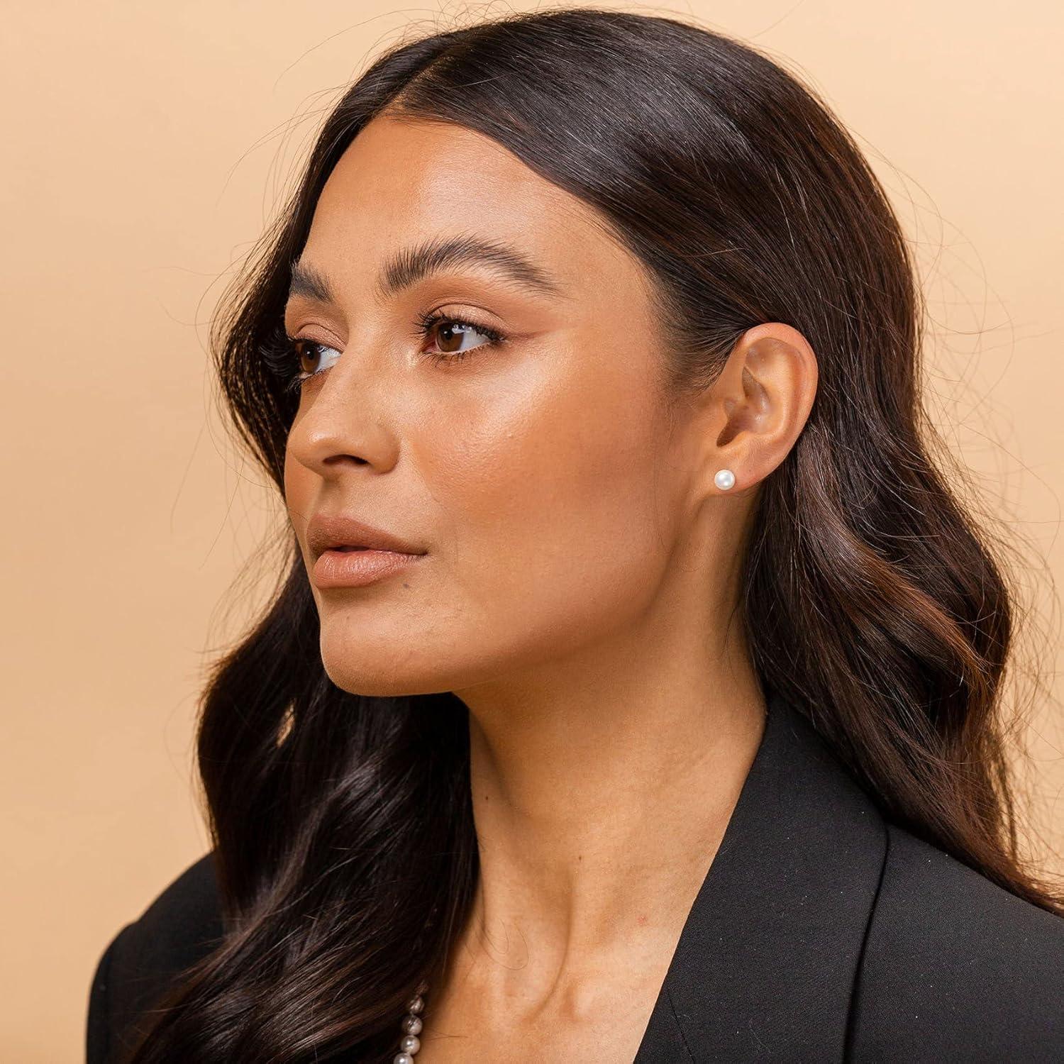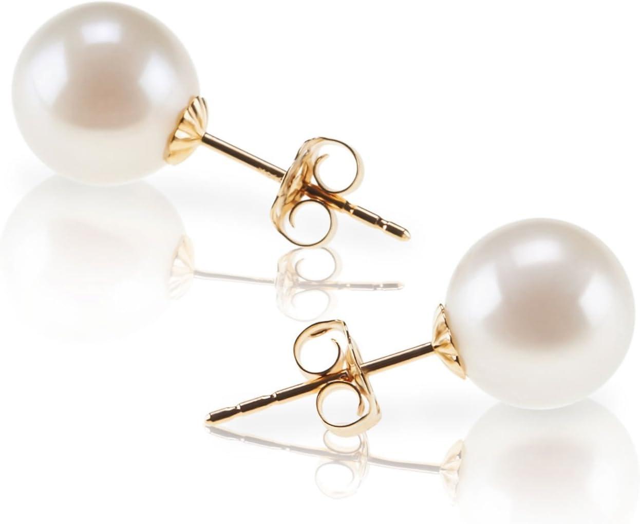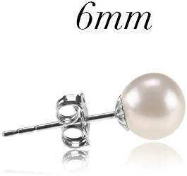 PAVOI 925 Sterling Silver, 14K Gold Plated, AAA+ Quality Handpicked Freshwater Cultured Stud Pearl Earrings(White Gold)