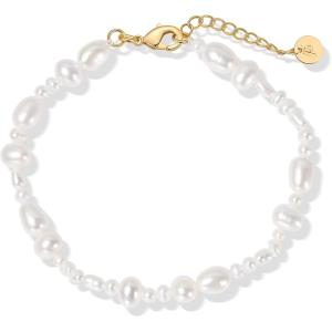 PAVOI 18K Gold Plated Beaded Freshwater Cultured Pearl Bracelet for Women | Dainty Bracelet with Pearl Beads(Dainty Pearls)