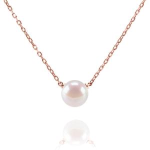 PAVOI Handpicked AAA+ Freshwater Cultured Single Pearl Necklace Pendant | Gold Necklaces for Women(Rose Gold)